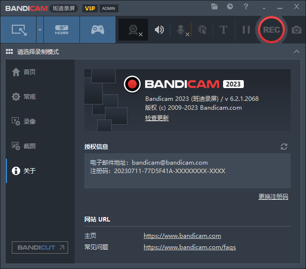 Bandicam_6.2.1.2目前是能找到的最新的VIP版,这是2023年五月份更新的一个版本。